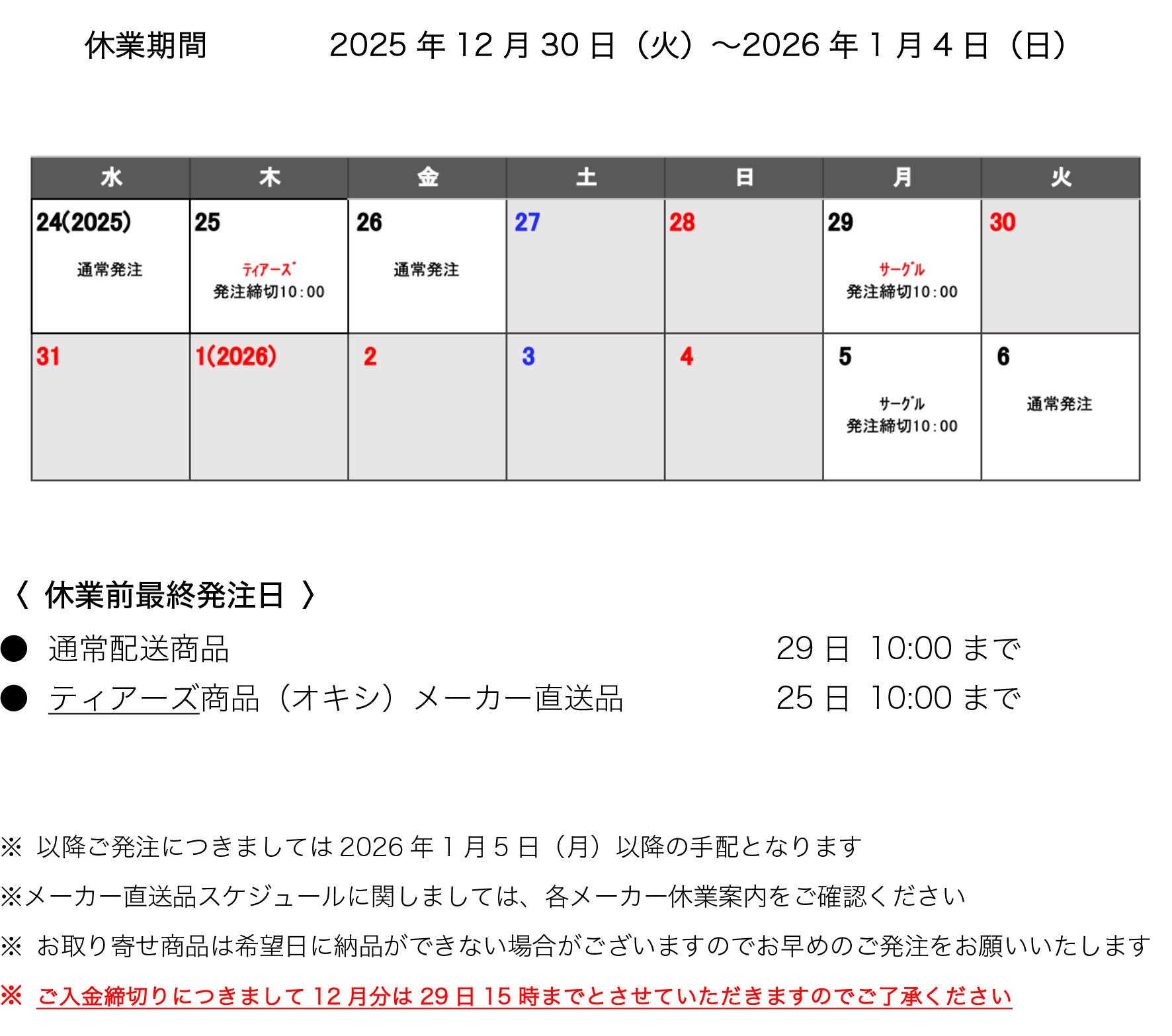さて、誠に勝手ながら弊社では下記の期間を冬季休業とさせていただきます。